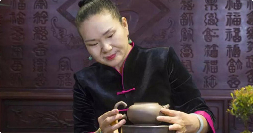 作者造器,采用纯手工传统手捏法,结合绘画布局章法,删繁就简,柔和天然,收敛有致,写意传神,用平常心境囊括自然物状,用陶艺语言淡化工艺特征。她与泥为伍,游离于技巧之上,以陶艺创意,且保留传统法则,充分体现紫砂茶具的“深沉、博大和纯朴”这三大功能特征,逐步形成自己的艺术风格。